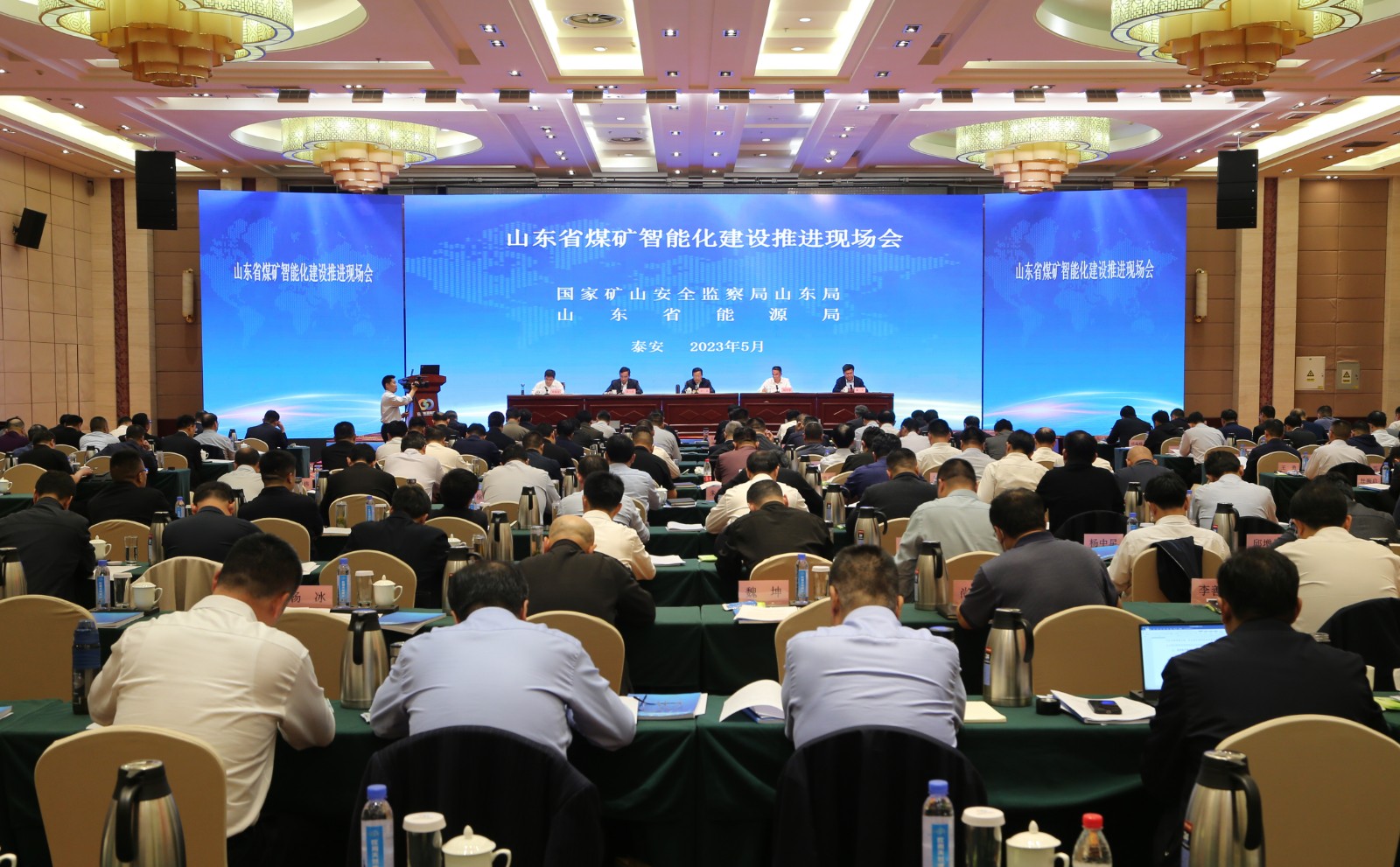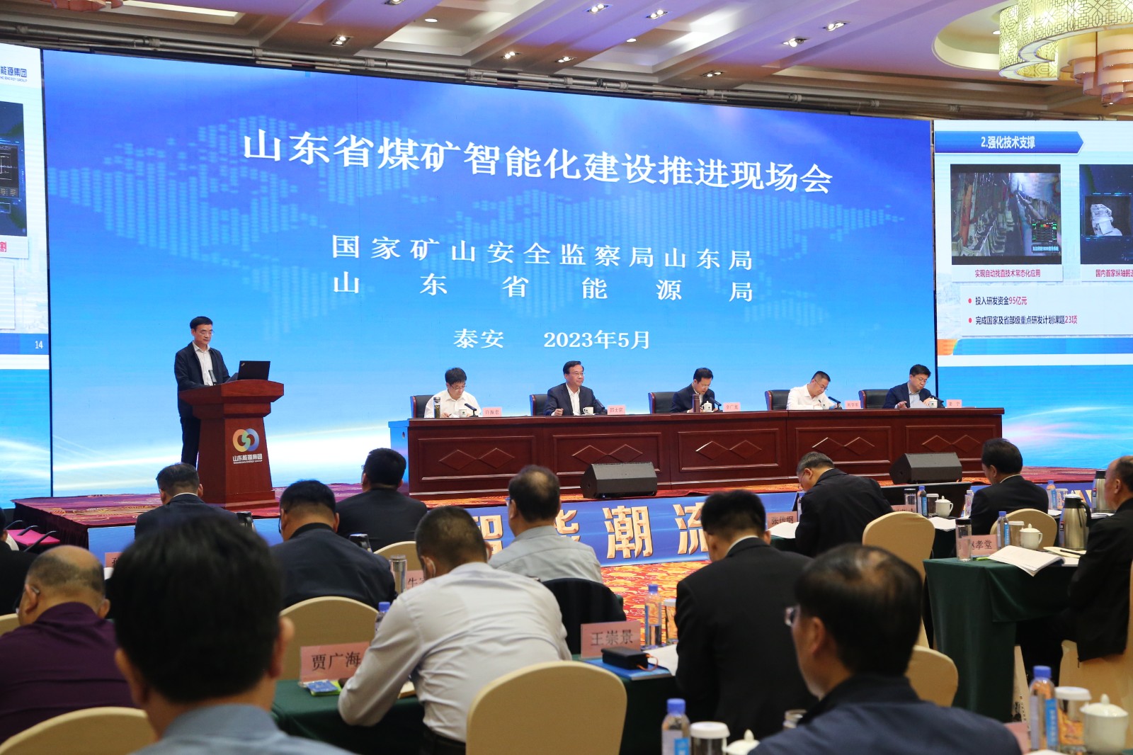 5月9日,由国家矿山安全监察局山东局、山东省能源局主办,山东能源新矿集团承办的山东省煤矿智能化建设推进现场会在泰安召开。会议深入学习贯彻习近平总书记关于安全生产重要指示批示精神,按照全国矿山智能化建设和安全发展推进会工作部署,进一步解放思想、更新观念,聚焦薄煤层、中厚煤层智能化开采,加快推进山东煤矿智能化建设,提高本质安全水平,为高质量发展提供强有力的支撑。国家矿山安全监察局山东局党组书记、局长辛广龙,山东省能源局党组成员、副局长刘学军出席会议并讲话。